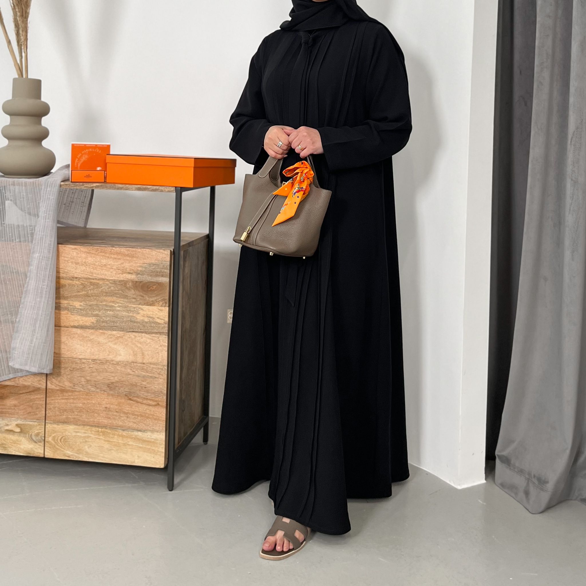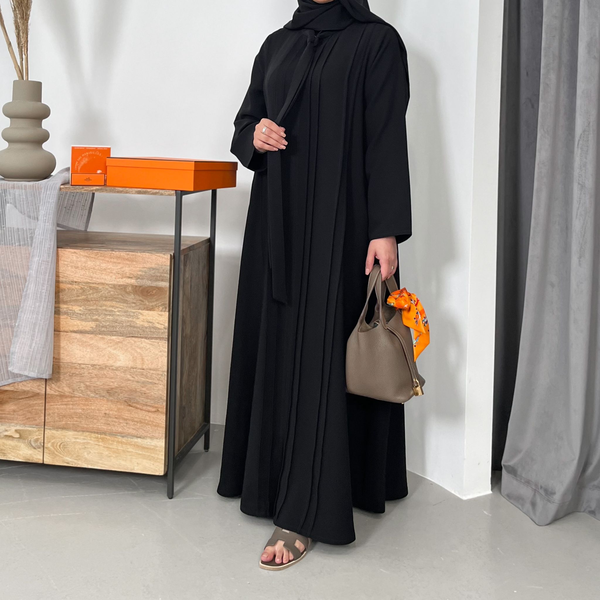عباية بقصة الدريس مسكره كاملة مع كسرات وربطة بخام الكريب الكوري