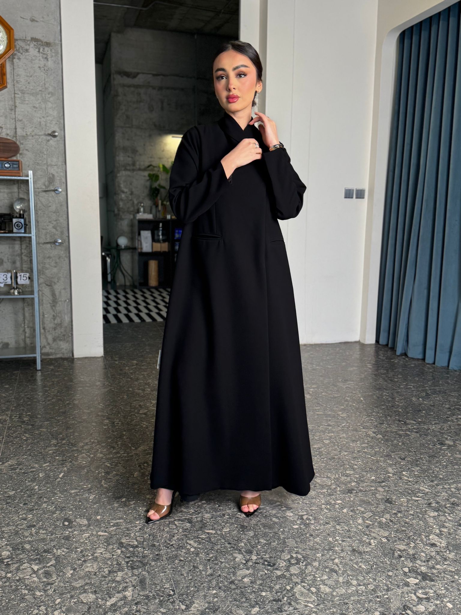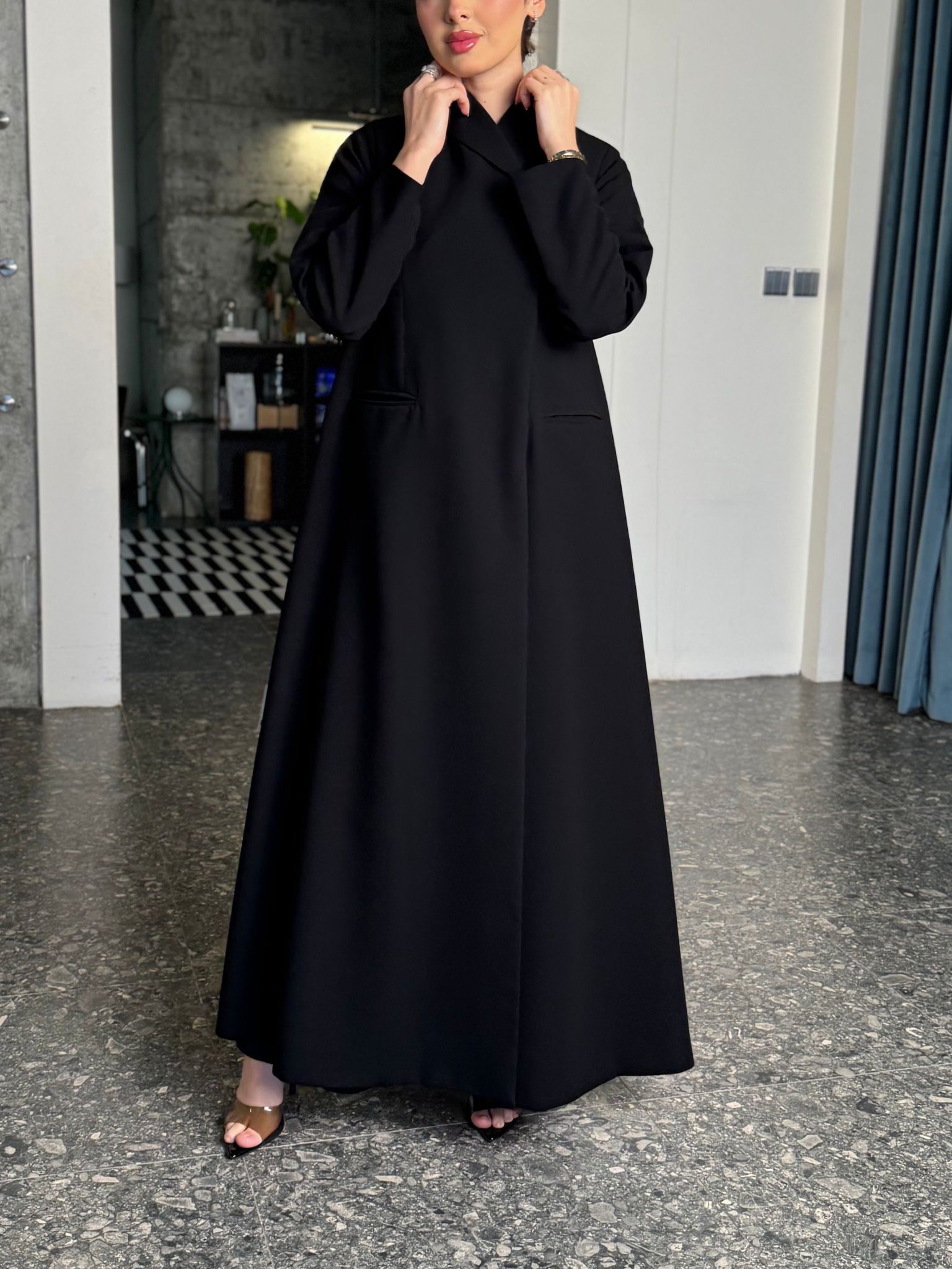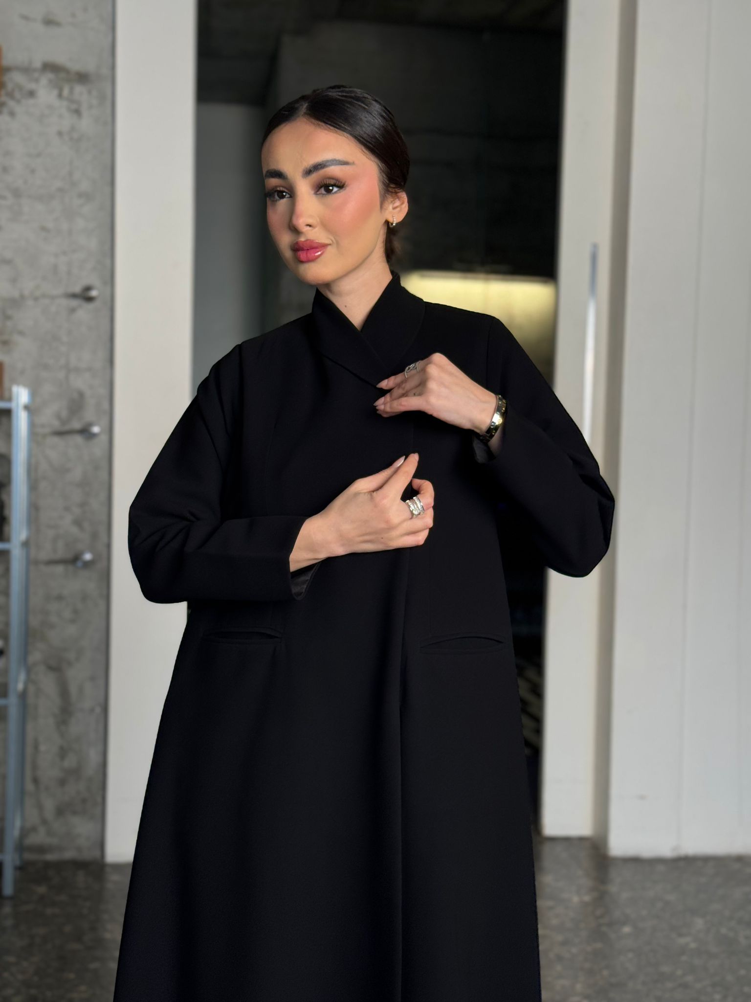 عباية مبطنة بقصة بليزر وياقة مسكرة ومن داخل ٤ طباقي ومخابي ومن تريد الطباقي الكامل تكتب بالملاحظات