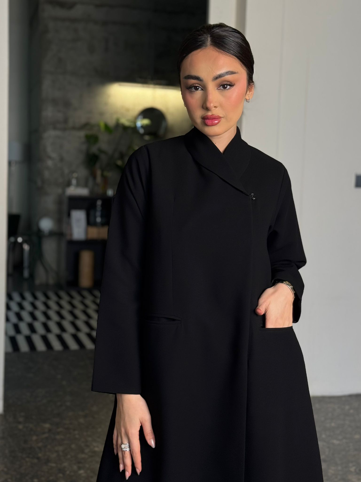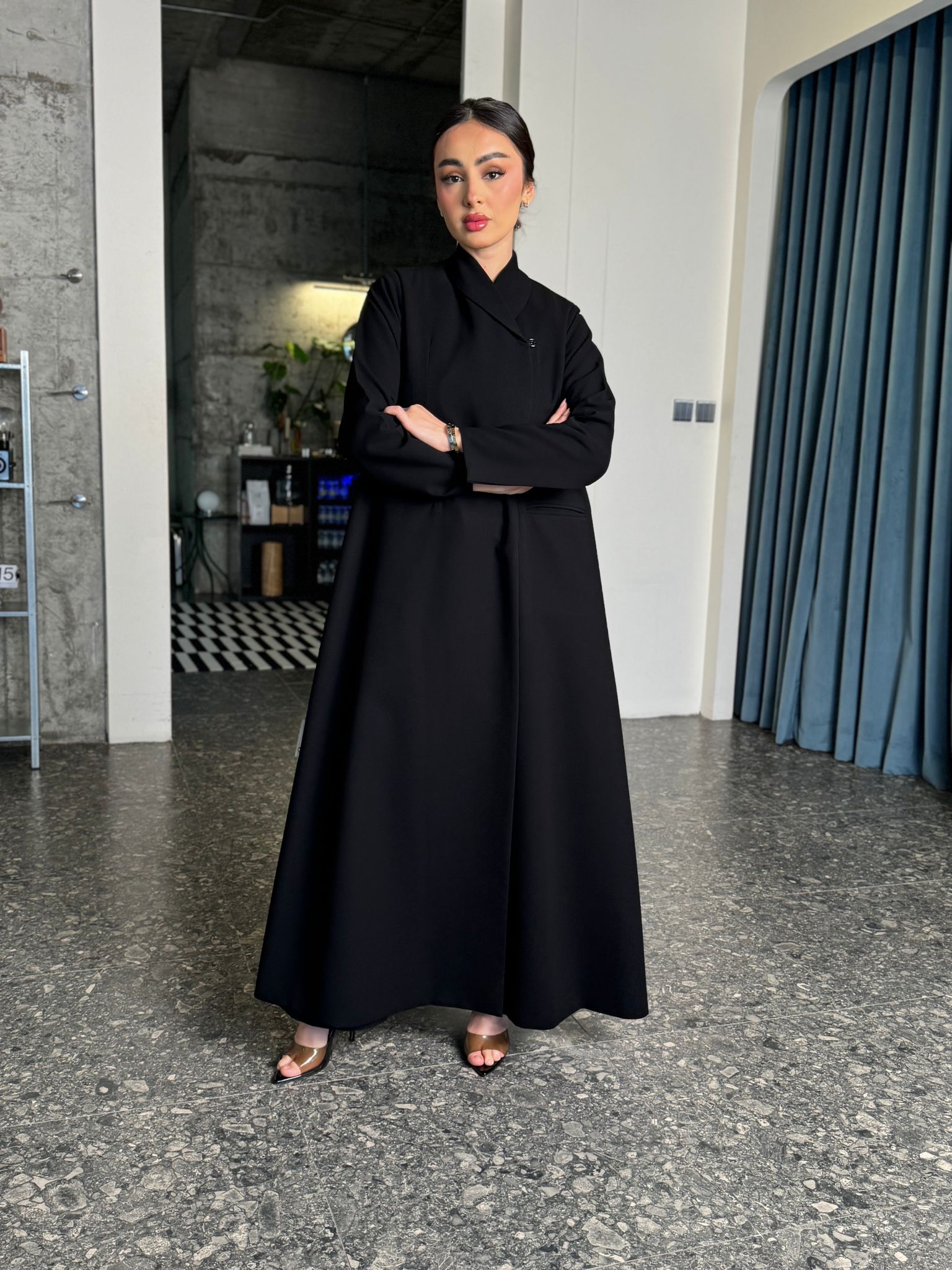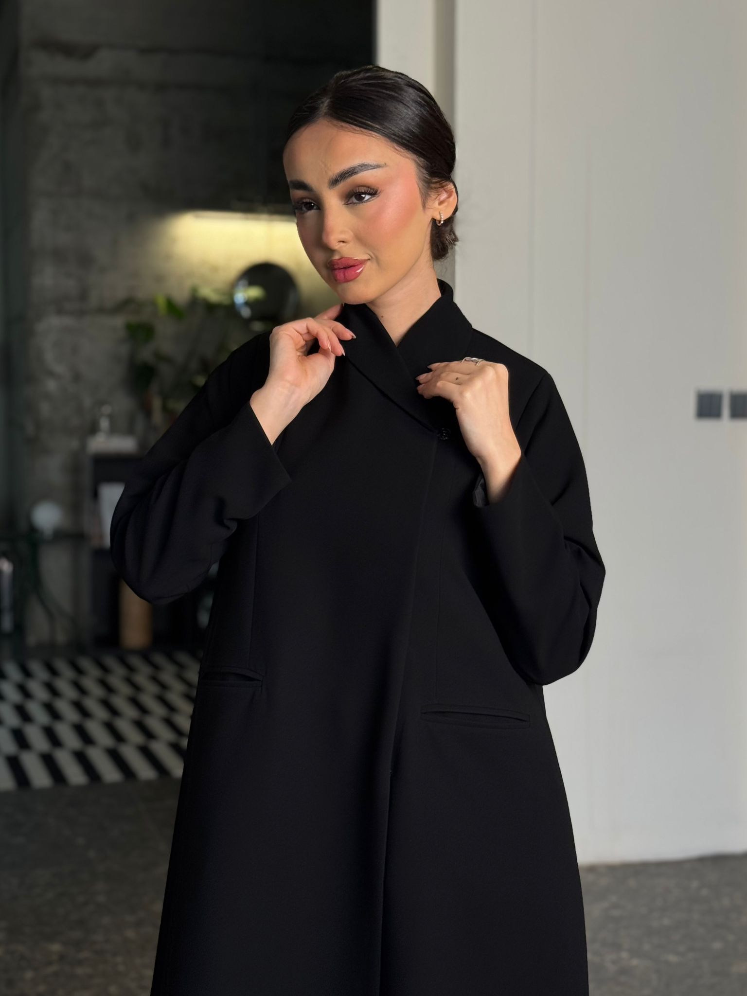 عباية مبطنة بقصة بليزر وياقة مسكرة ومن داخل ٤ طباقي ومخابي ومن تريد الطباقي الكامل تكتب بالملاحظات