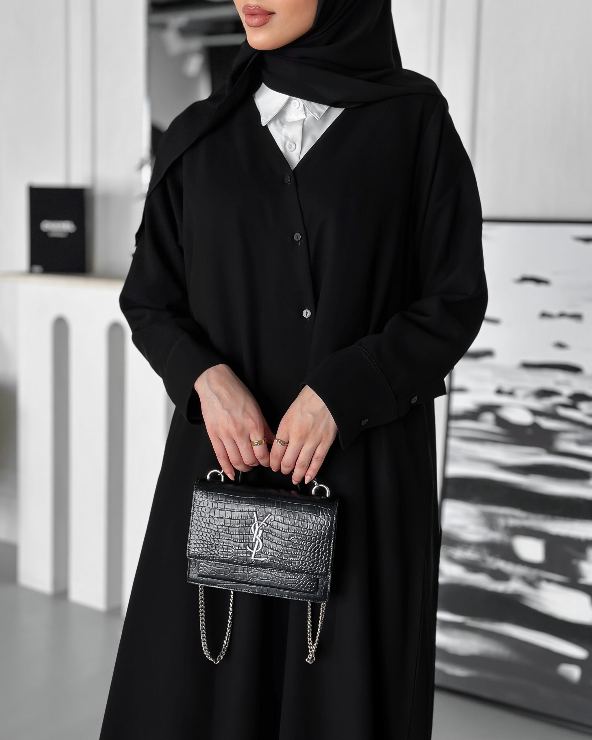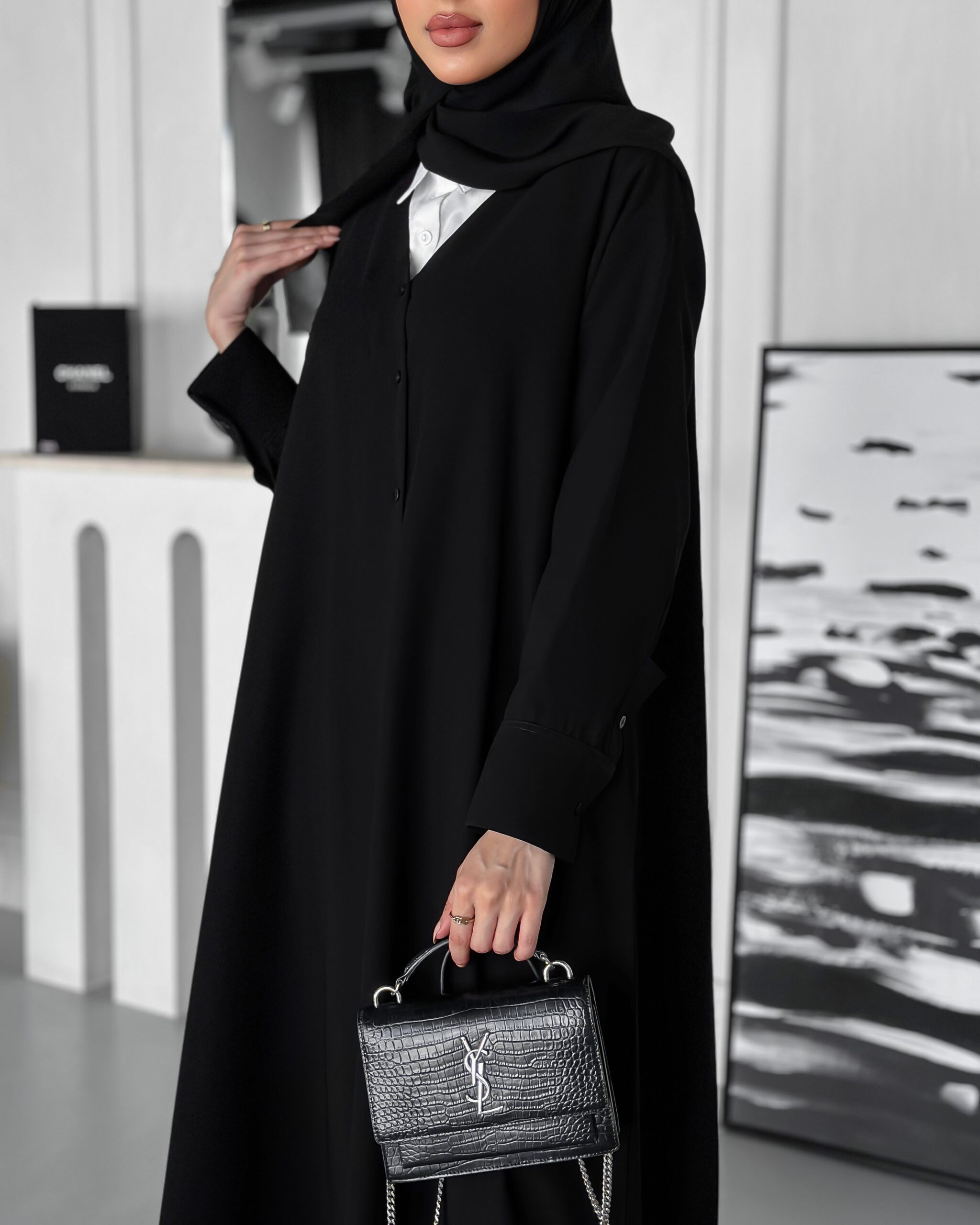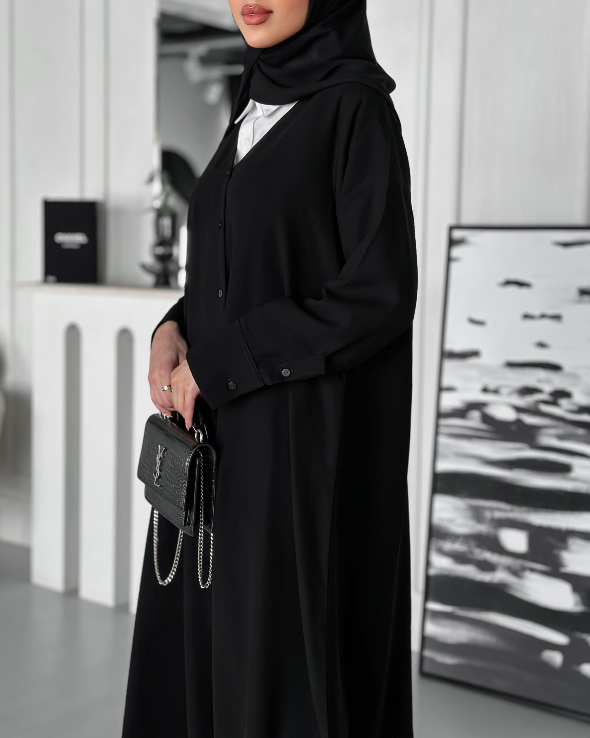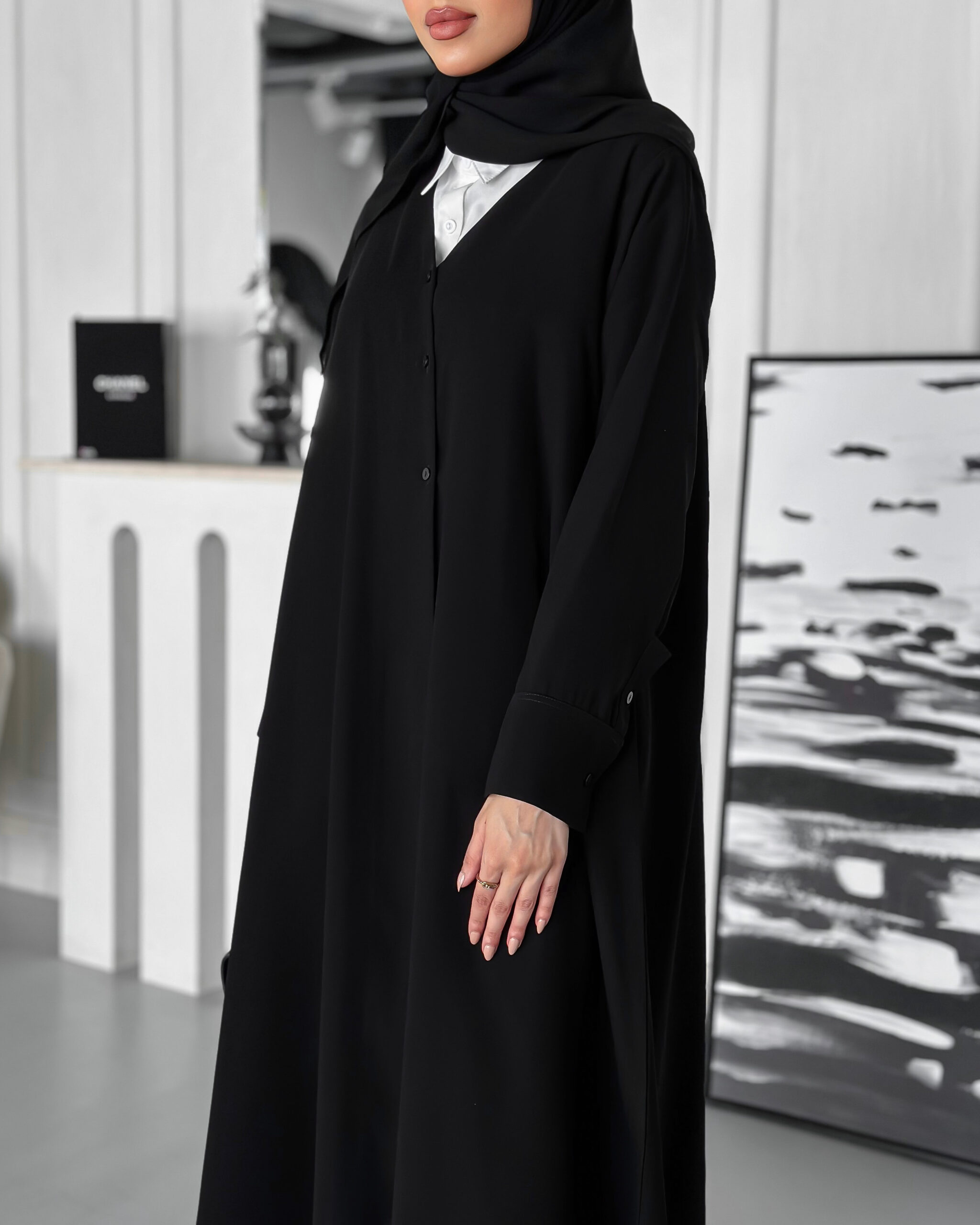عباية ستايل قميص بخام الكريب الكوري ملاحظة العباية فقط تسكيرة مكان الزراير من تريد الطباقي تكتب بالملاحظات