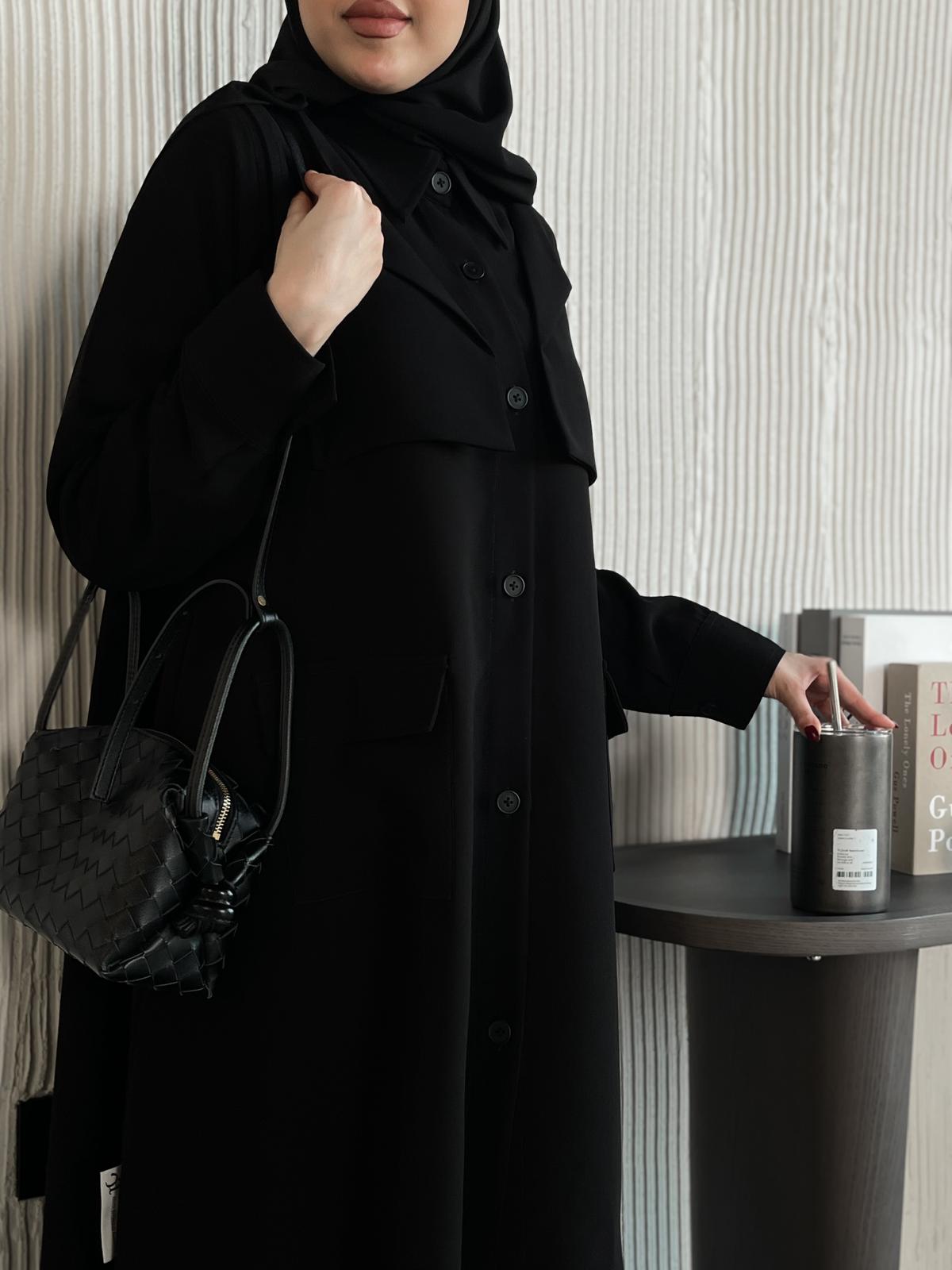 عباية بستايل قميص سبورت بخام الكريب مع زراير