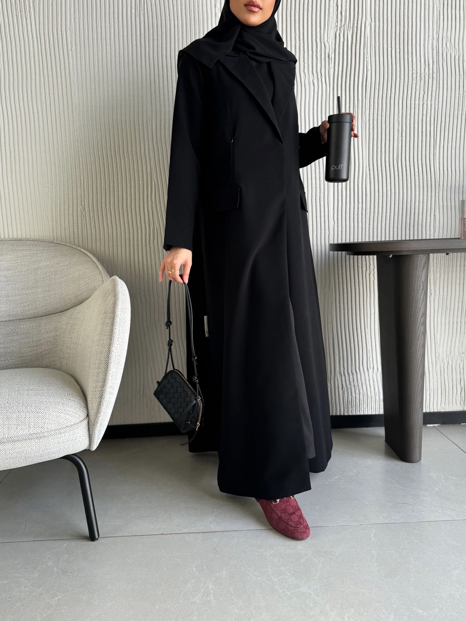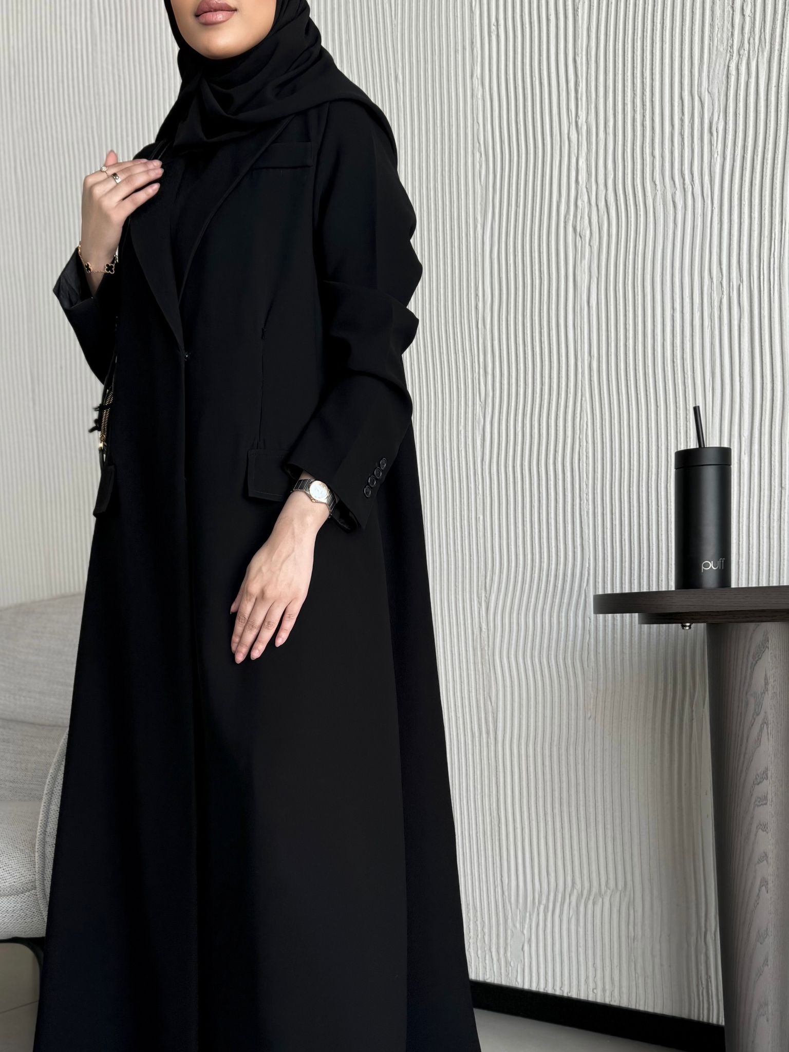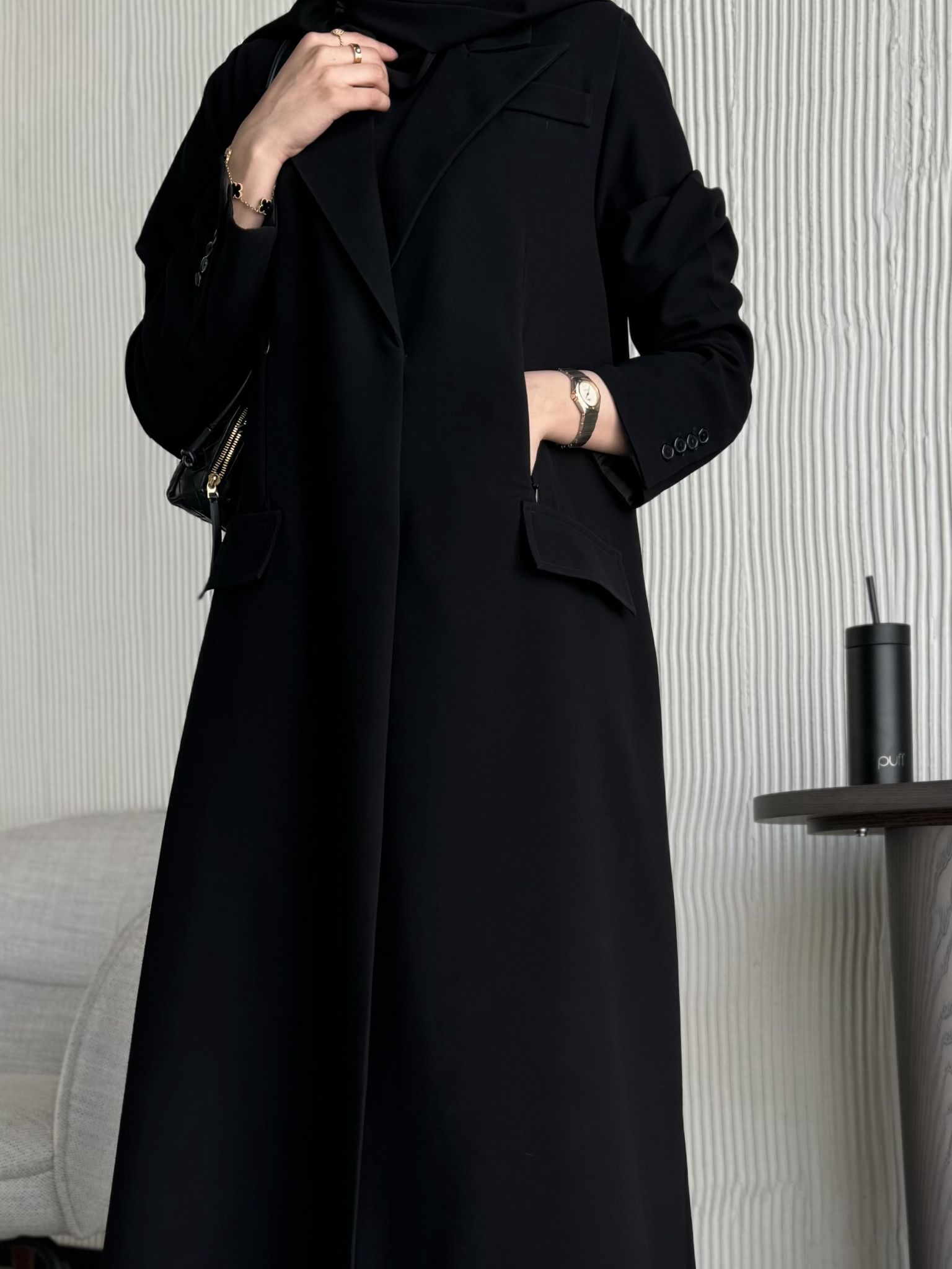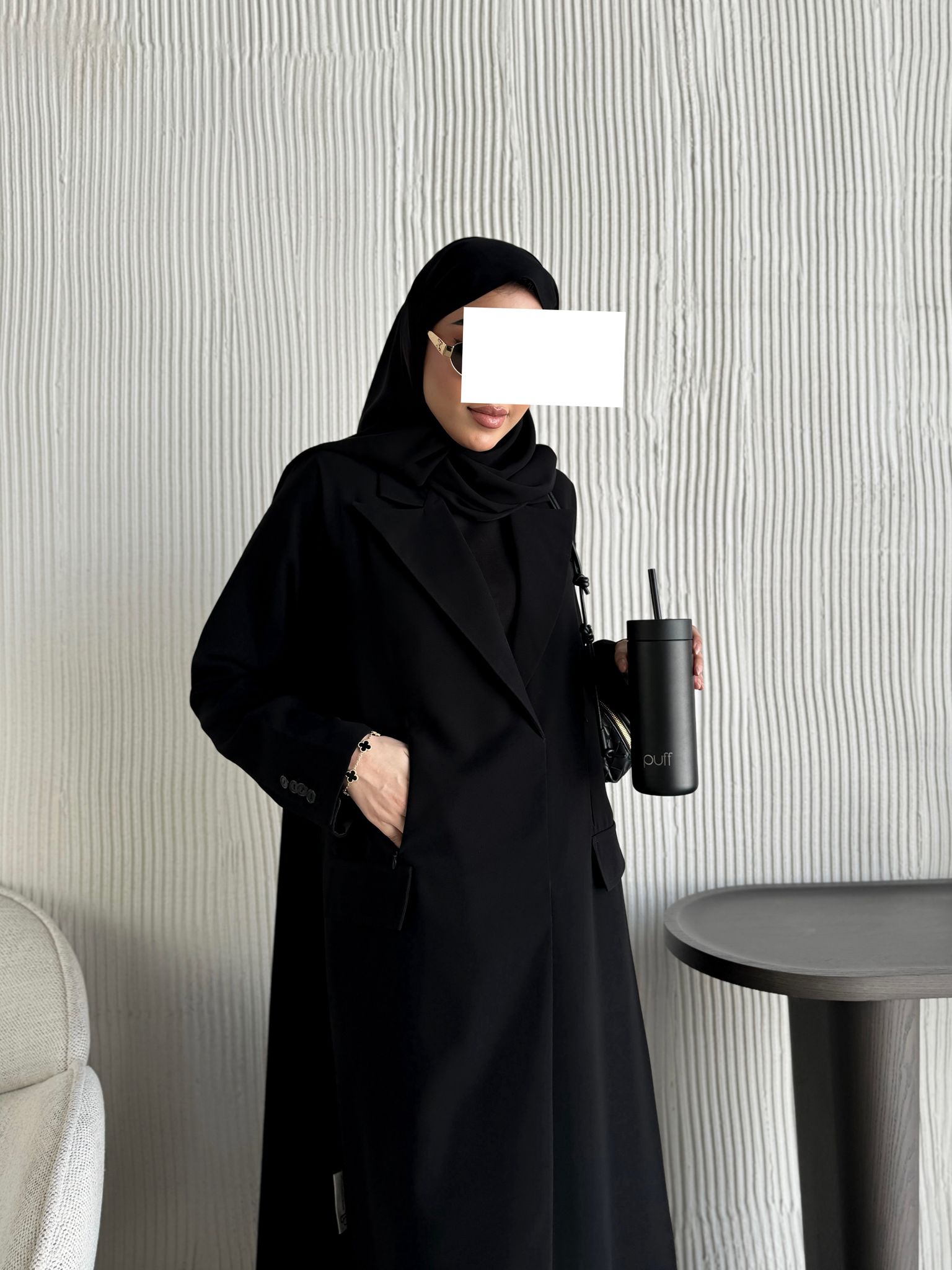 عباية بليزر بخام كريب فيها سحابات مخابي وطباقي اثنين من تريد الطباقي الكامل تكتب بالملاحظات
