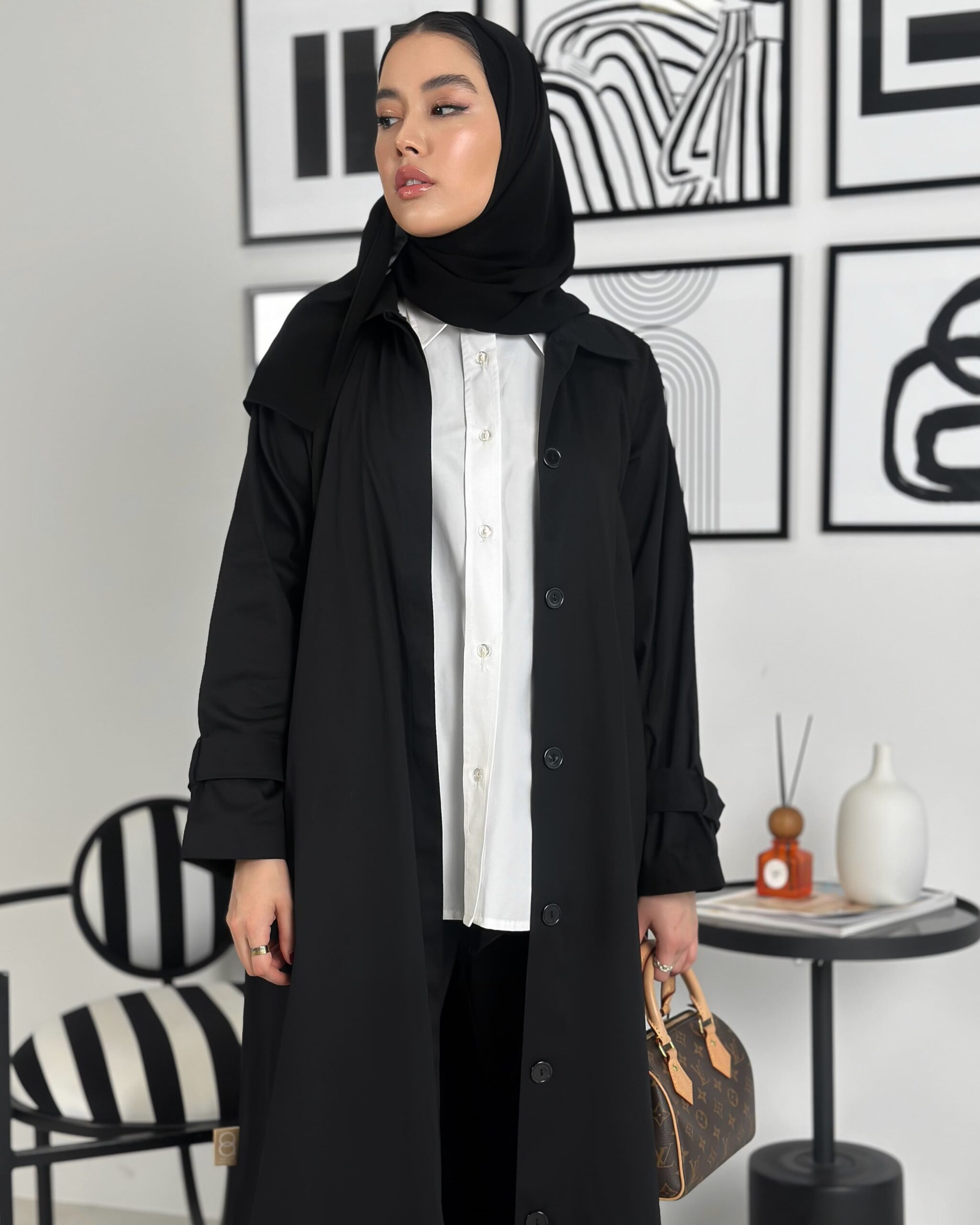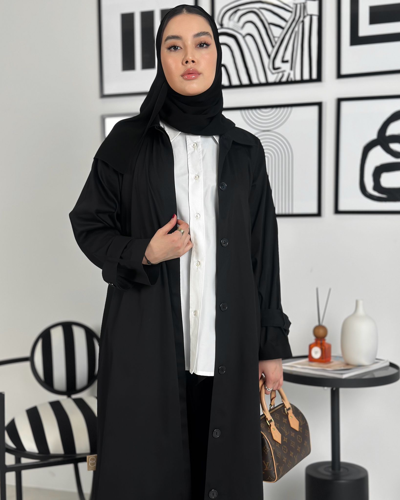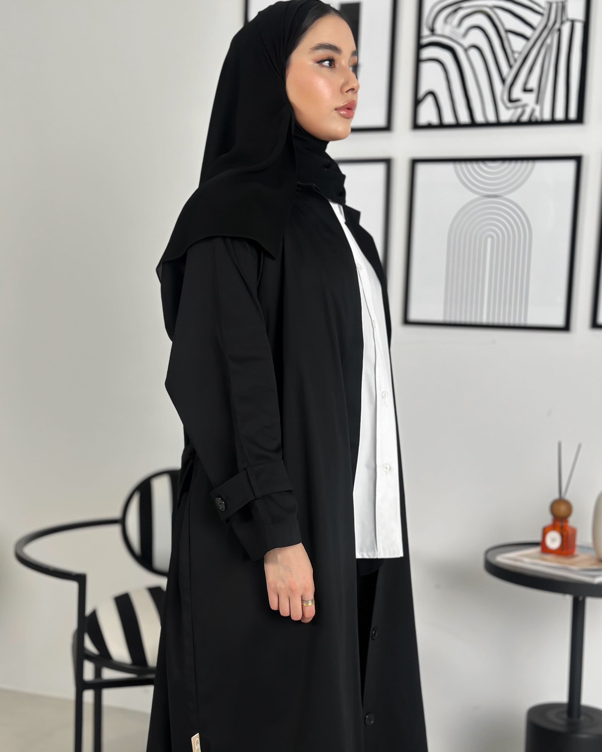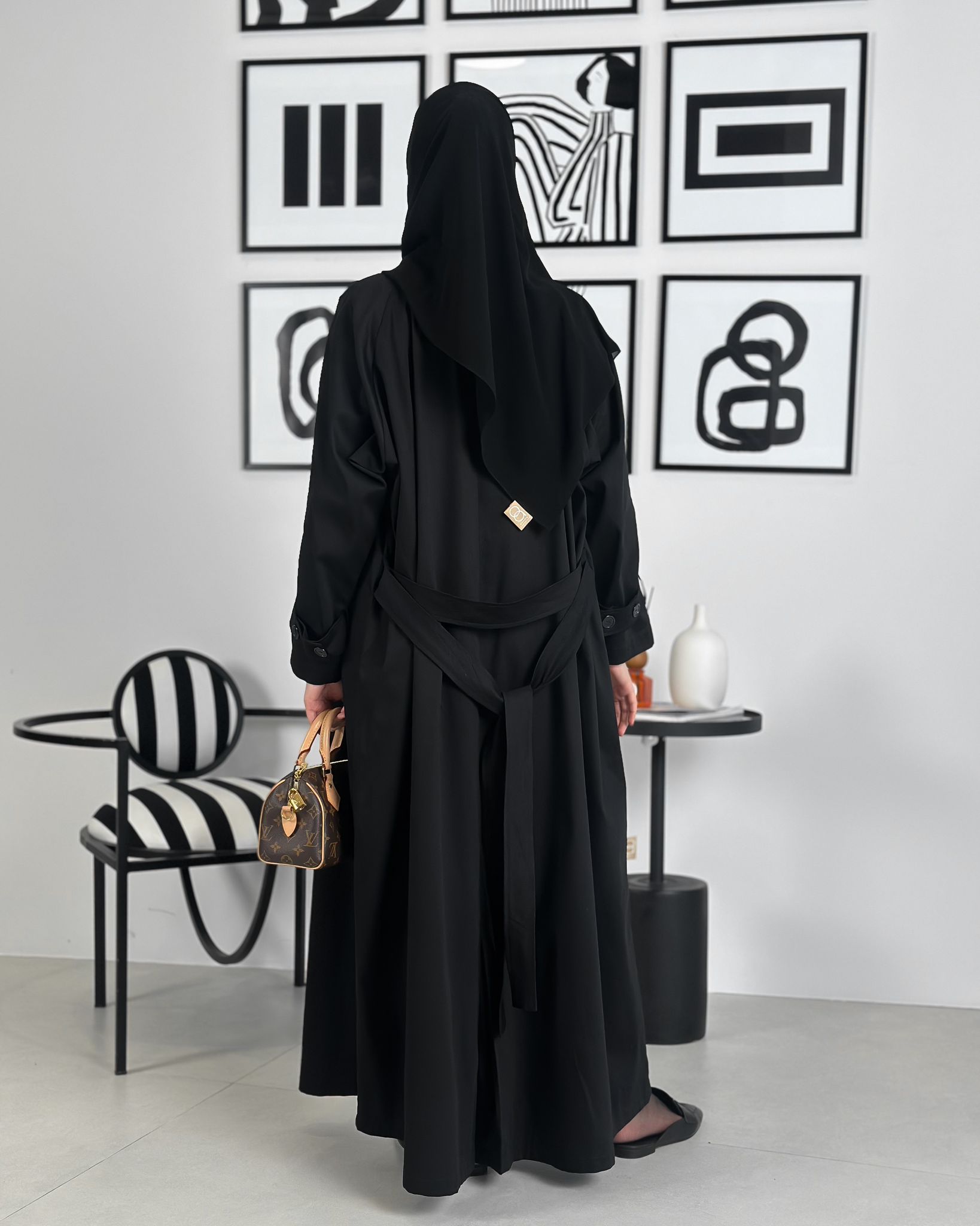 جاكيت صيفي اسود خامته جينز مع زراير كاملة وحزام من تريد الغاء الحزام تكتب بالملاحظات