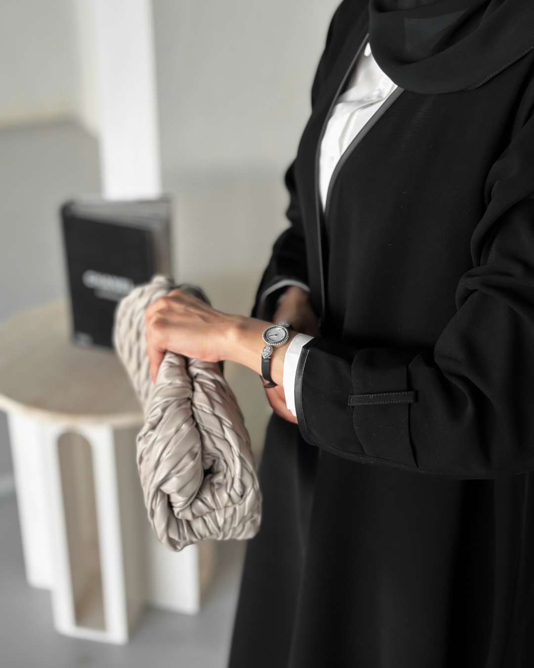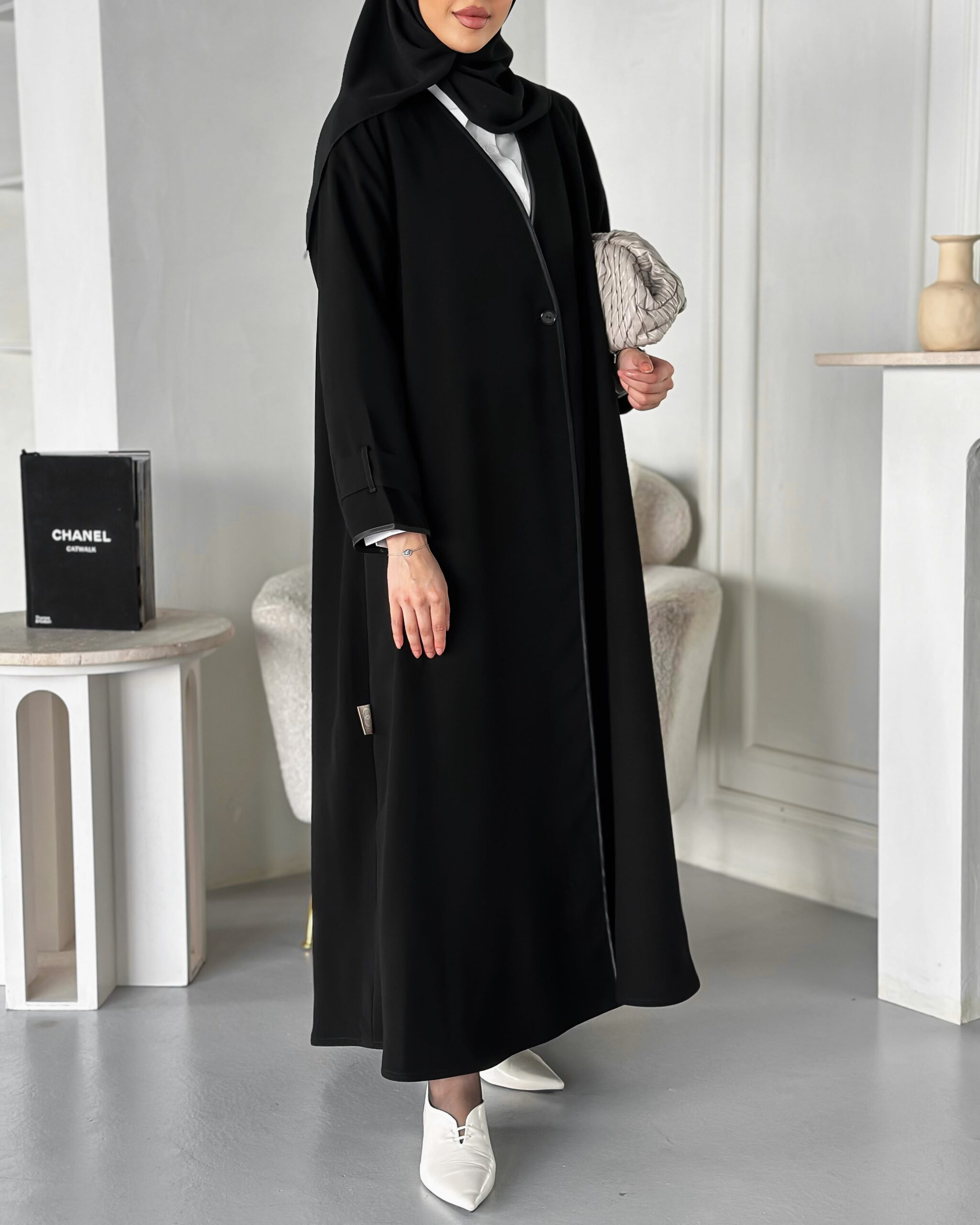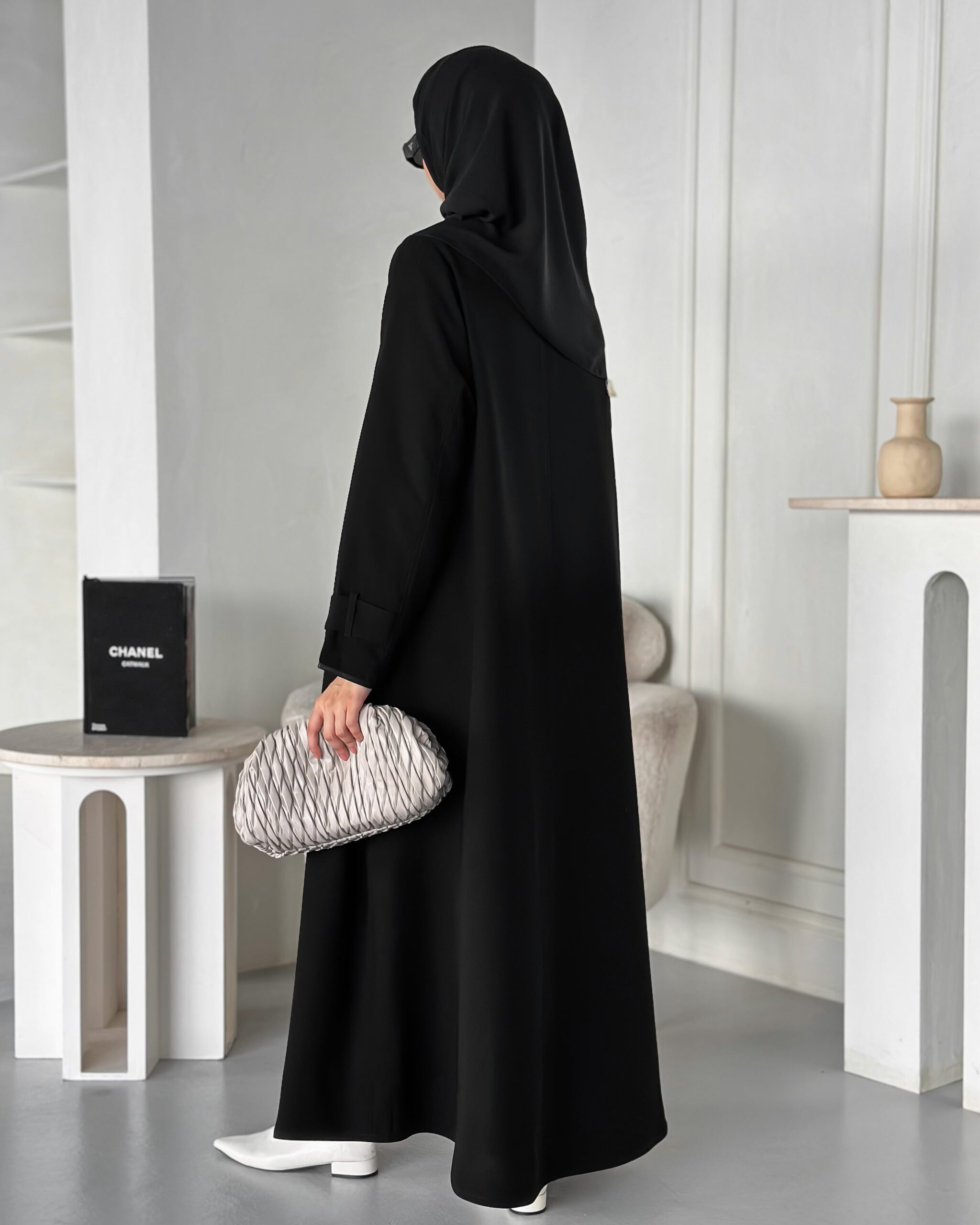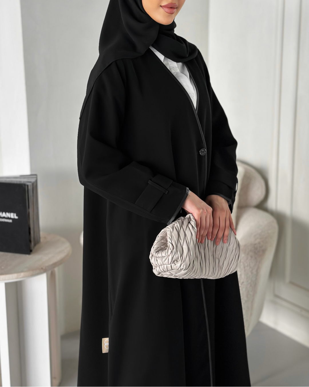 عباية بخام الكريب الكوري مع بريم باللون الاسود وتسكيرة فقط مكان الزرار من تريد الطباقي المخفي تكتب بالملاحظات