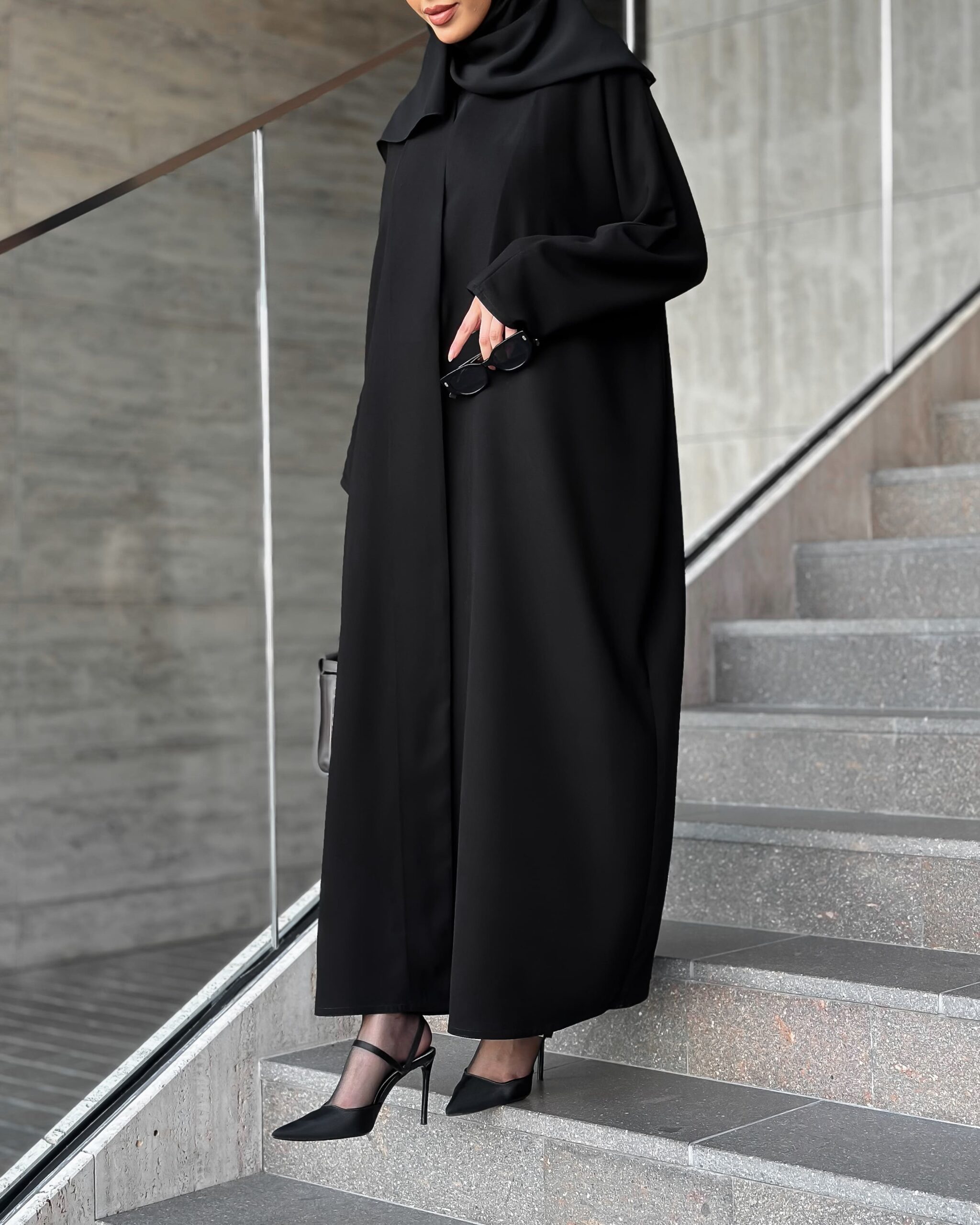 عباية قصتها بشت واسعة والكم سيدة بخام الكريب والعباية فيها ٢ طباقي بس من تريد الطباقي الكامل تكتب بالملاحظات