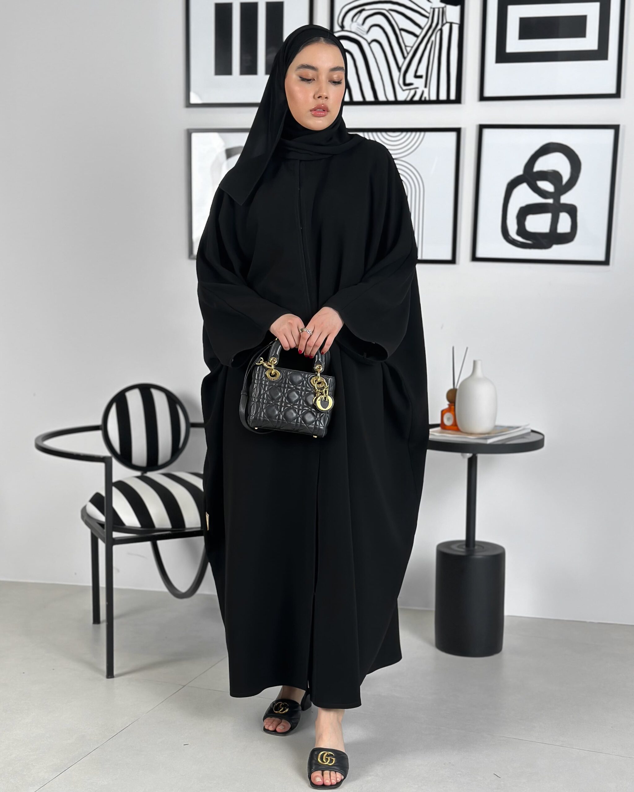 عباية سادة جاينيز واسعة بخام الكريب